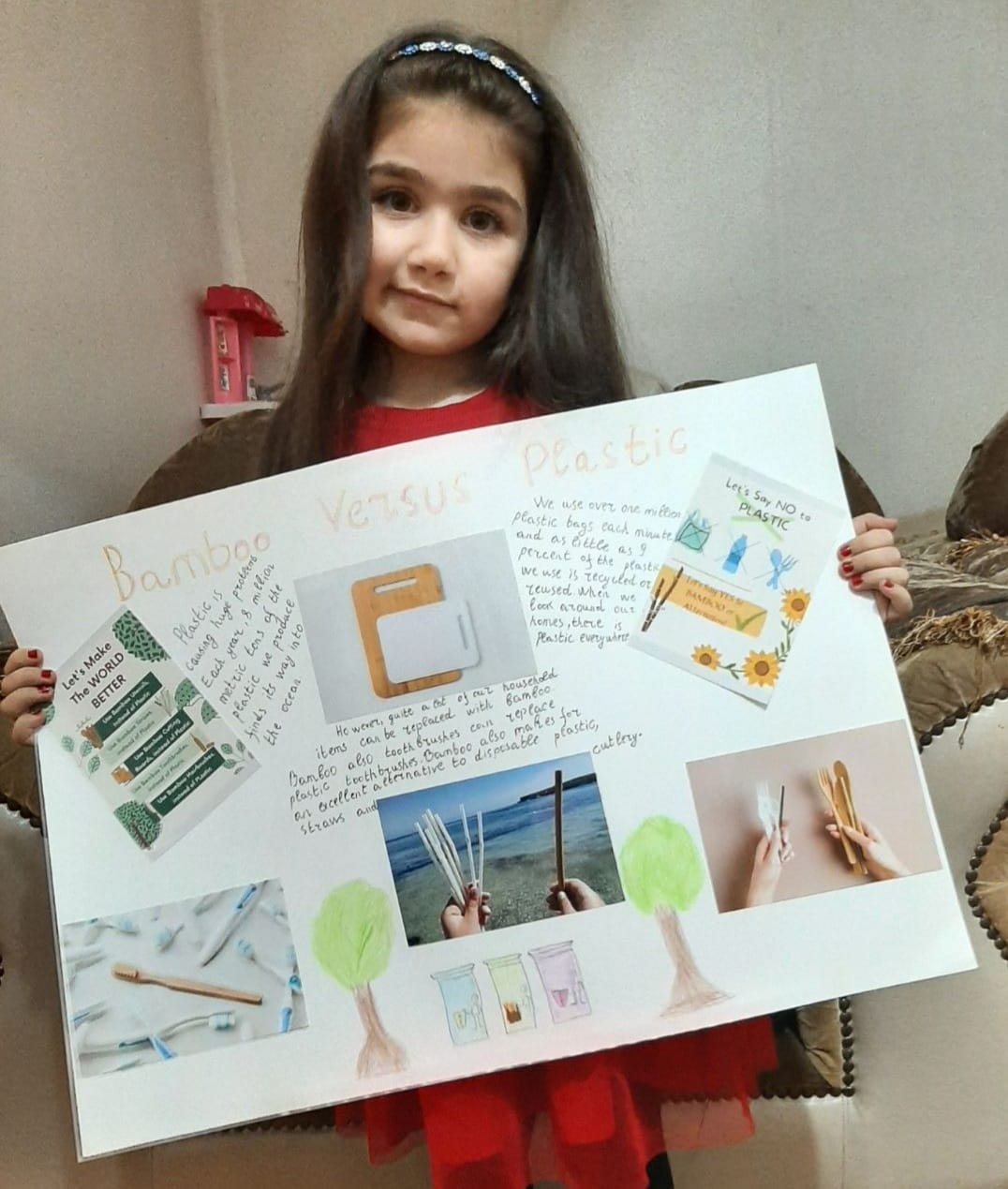 Մյուս աշխատանքը էկոլոգիական խնդիրն էր։ Մենք վերցրել էինք պլաստիկի և թղթի վերամշակման տարբերակները, որը ևս շատ մանրակրկիտ ու հանգամանորեն ներկայացրեցինք նախագծում` պատրաստելով պաստառներ ու նյութեր դրա վերաբերյալ։ Այս աշխատանքը շատ ակնառու էր մեզ մոտ, քանզի մեր դպրոցում իրականացվում է պլաստիկի և թղթի հավաքագրում և տեսակավորում, և փոքրիկներն իրենց աչքի առաջ ունեին օրինակը։